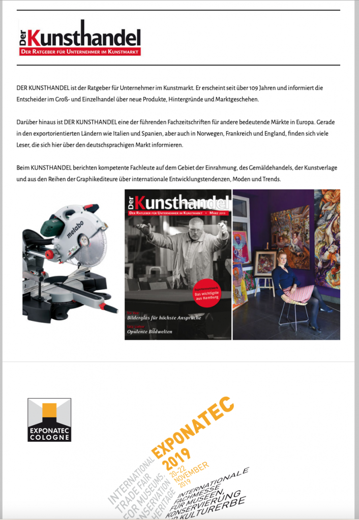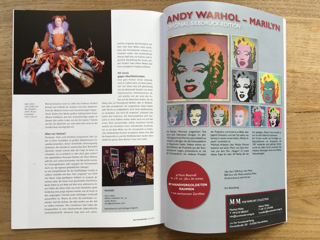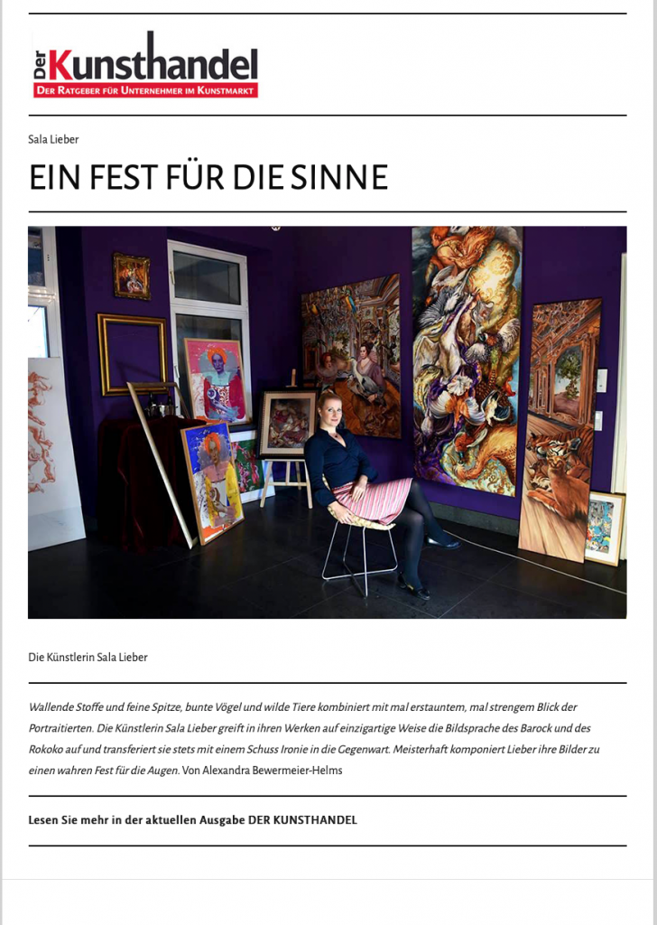 Artikel in “Der Kunsthandel” Ein 3-seitiger Artikel von Alexandra Bewermeier-Helms in der Zeitschrift “Der Kunsthandel” vom Fischer Kunsthandel Verlag 12. Mai 2019 Sala Lieber in Nicht kategorisiert, Presse 0 Like No Comments