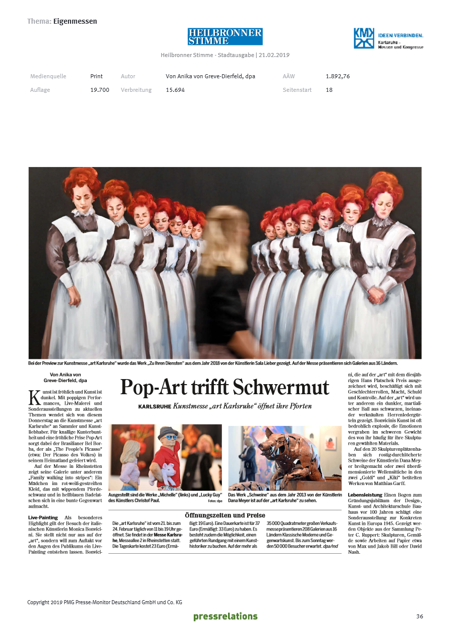 Sala Lieber stellt vom 13. bis 16. Februar 2020 mit der Art Galerie 7 auf der Art Karlsruhe aus. ...