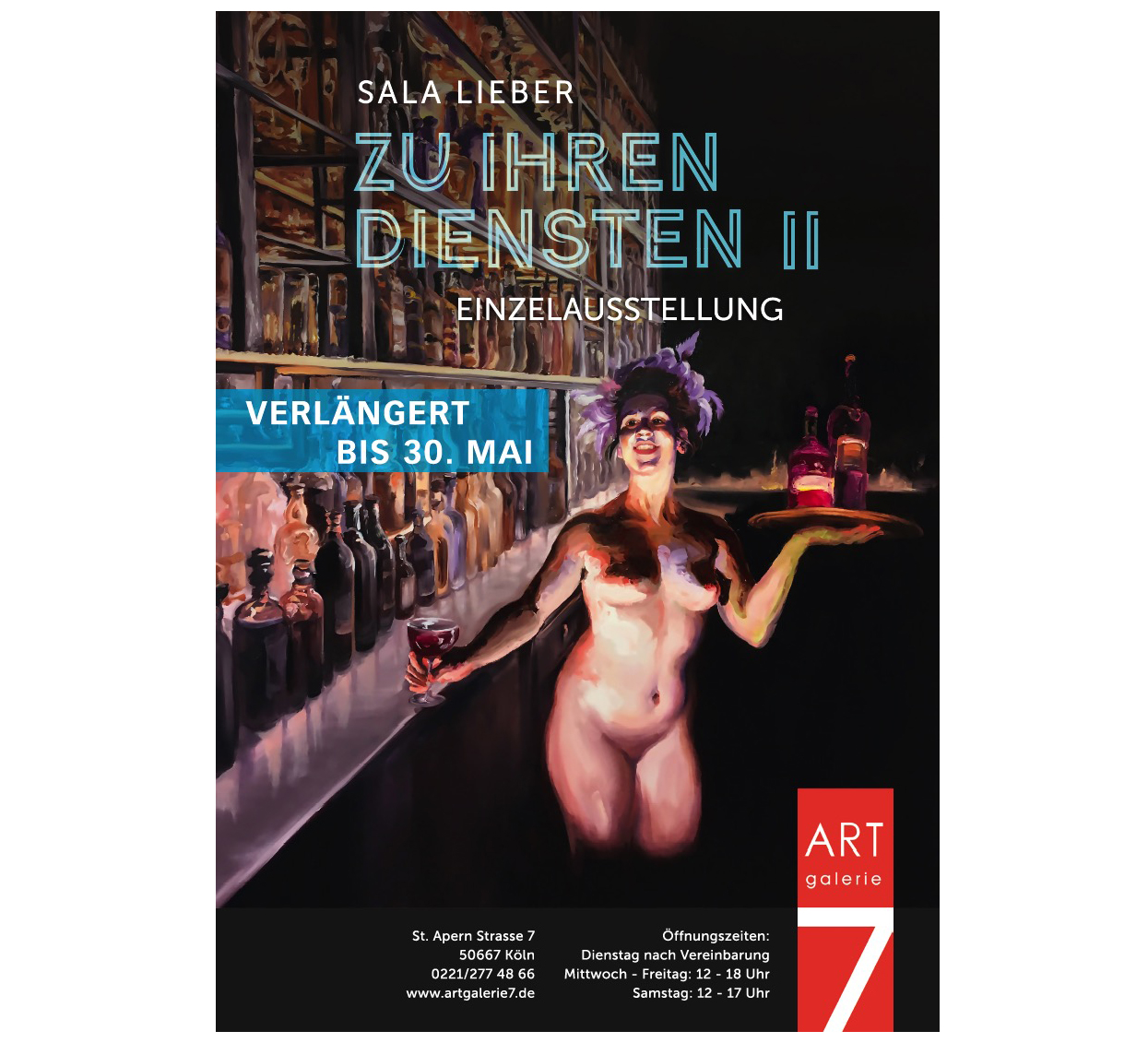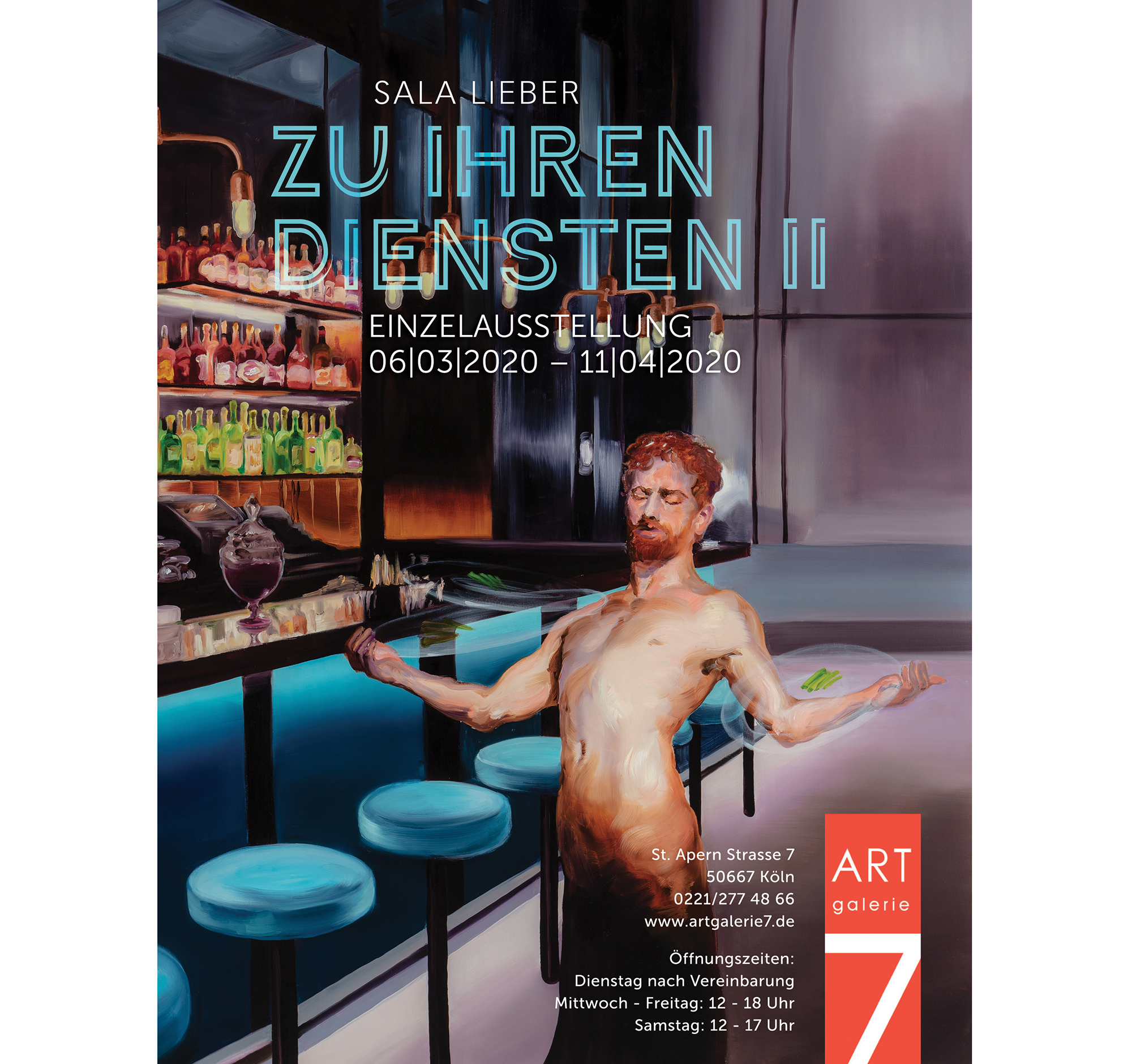 Einladung zur Eröffnung von Sala Liebers Einzelausstellung 'Zu Ihren Diensten' bei der Art Galerie 7 in Köln am Freitag, den...