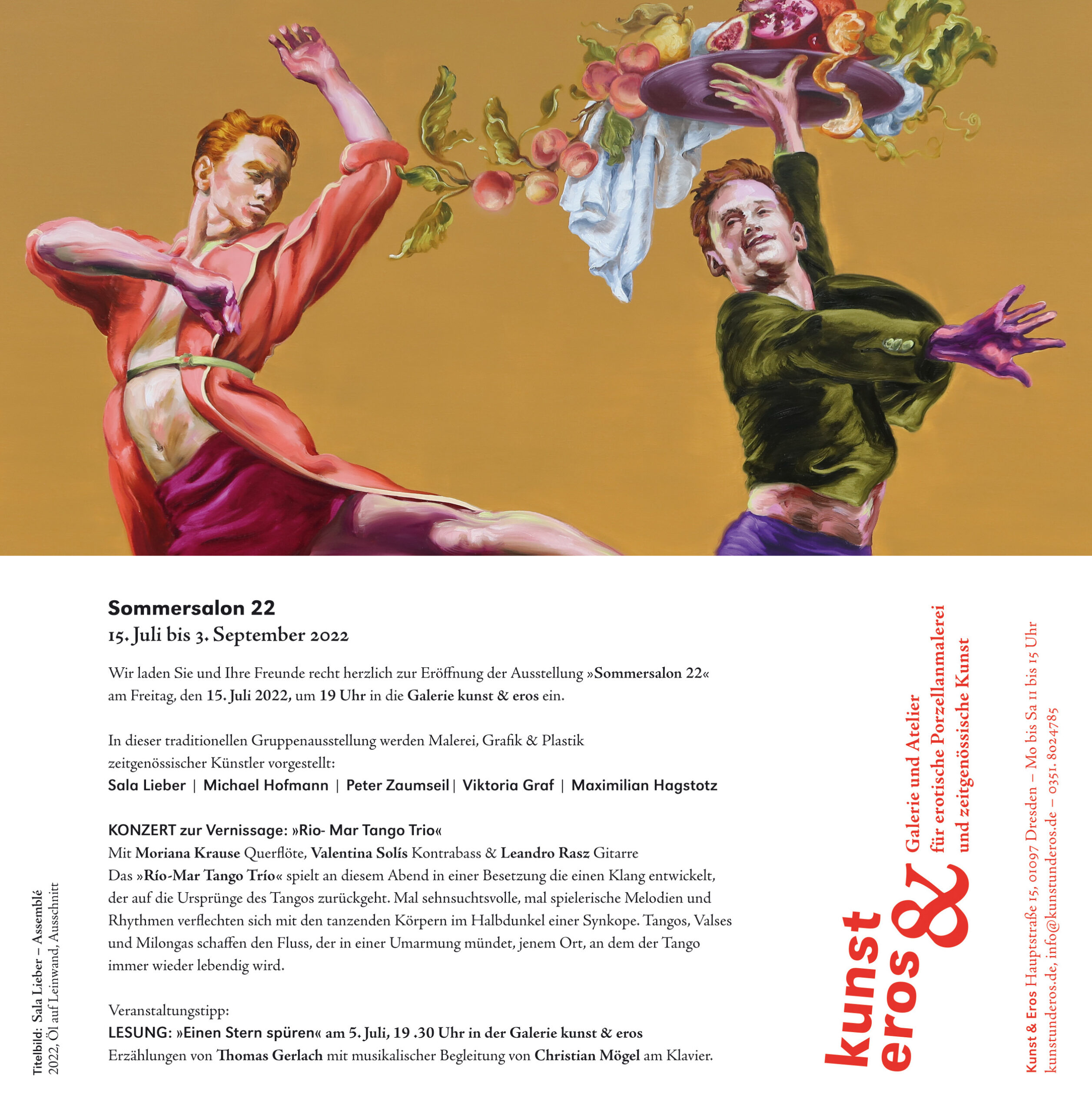 Gruppenausstellung 15. Juli bis 3. September 2022 VERNISSAGE & KONZERT am Freitag, den 15. Juli ⋅ 19 Uhr Galerie Kunst & Eros Janett Noack Hauptstraße...